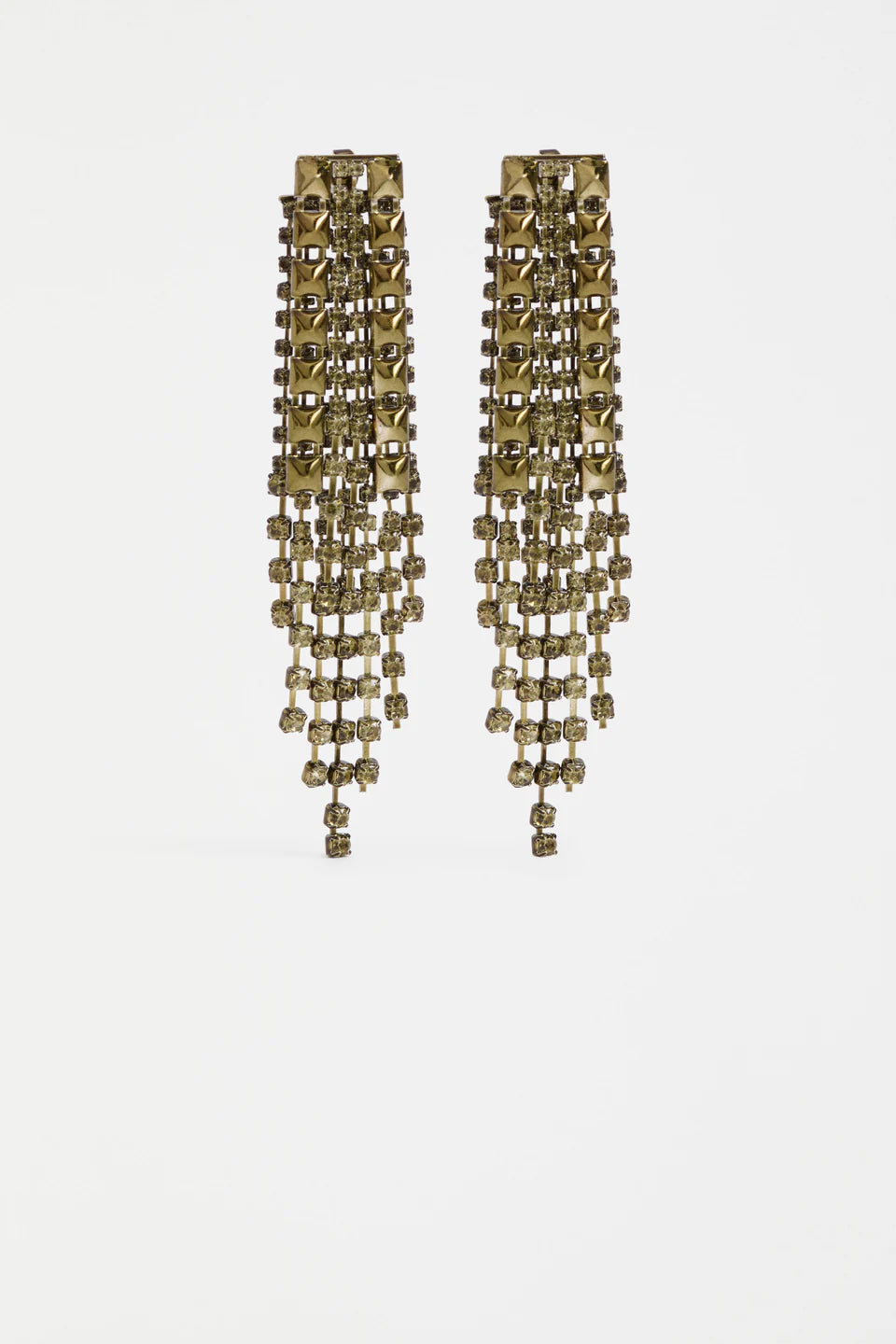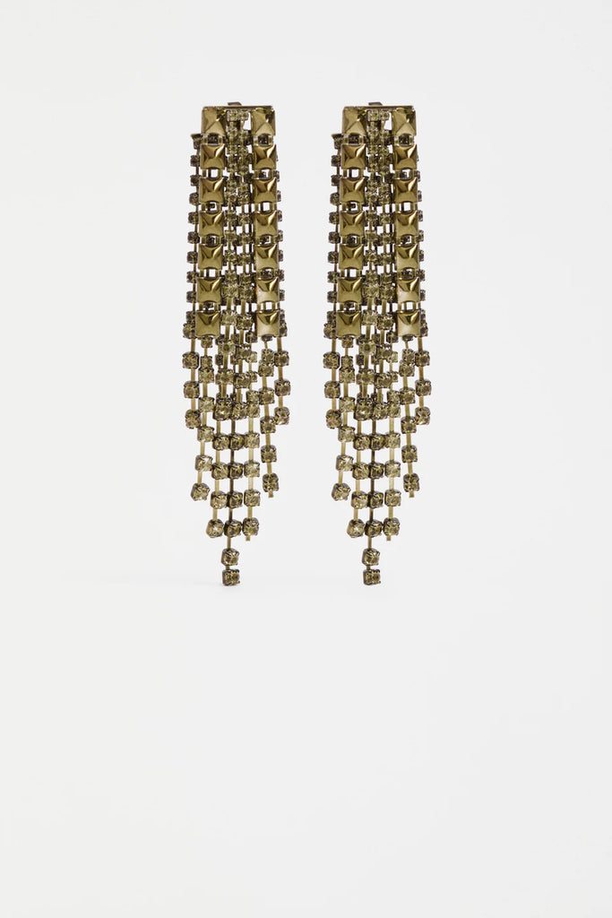 Make a glistening statement in the Rutor Earrings, these dramatic long drop earrings are comprised of tonal diamante chains and metallic studs in varying lengths. The maximalist design creates a show-stopping look, perfect for your special evening occasions. Catching the light and adding sparkle to every movement – these earring epitomise playful evening glamour.