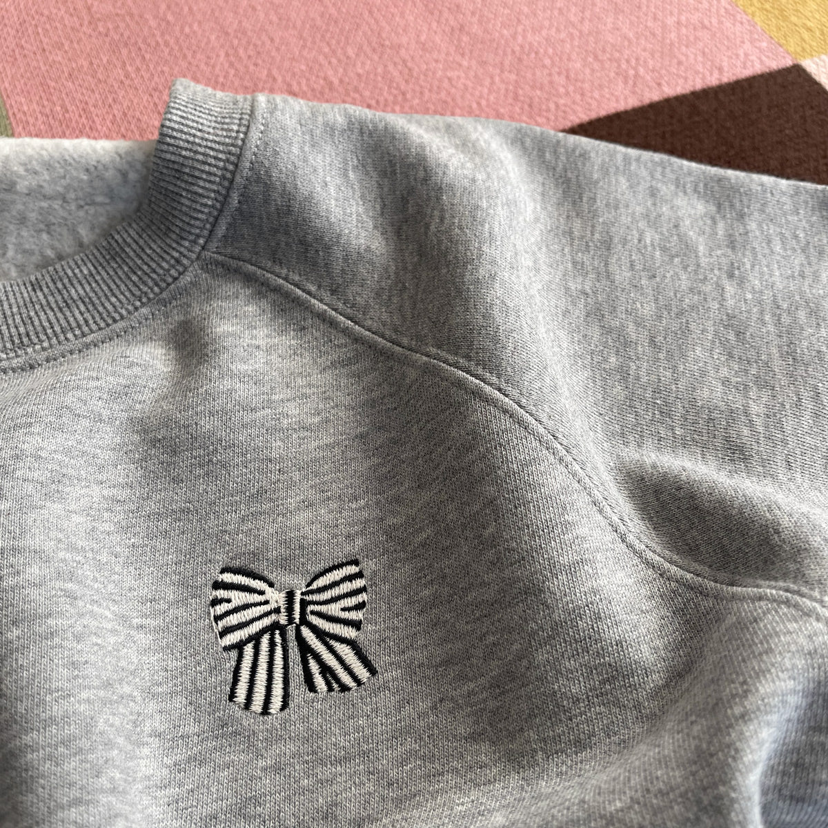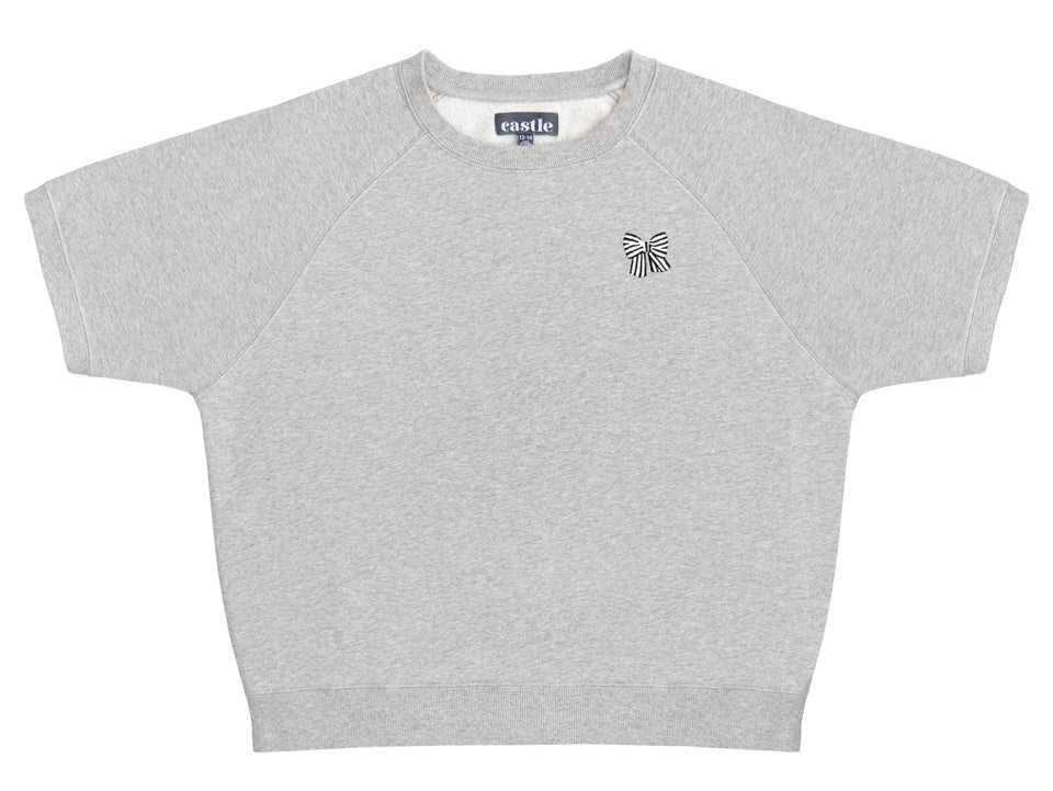RIBBON embroidered grey marle cotton fleece lined short sleeve sweater