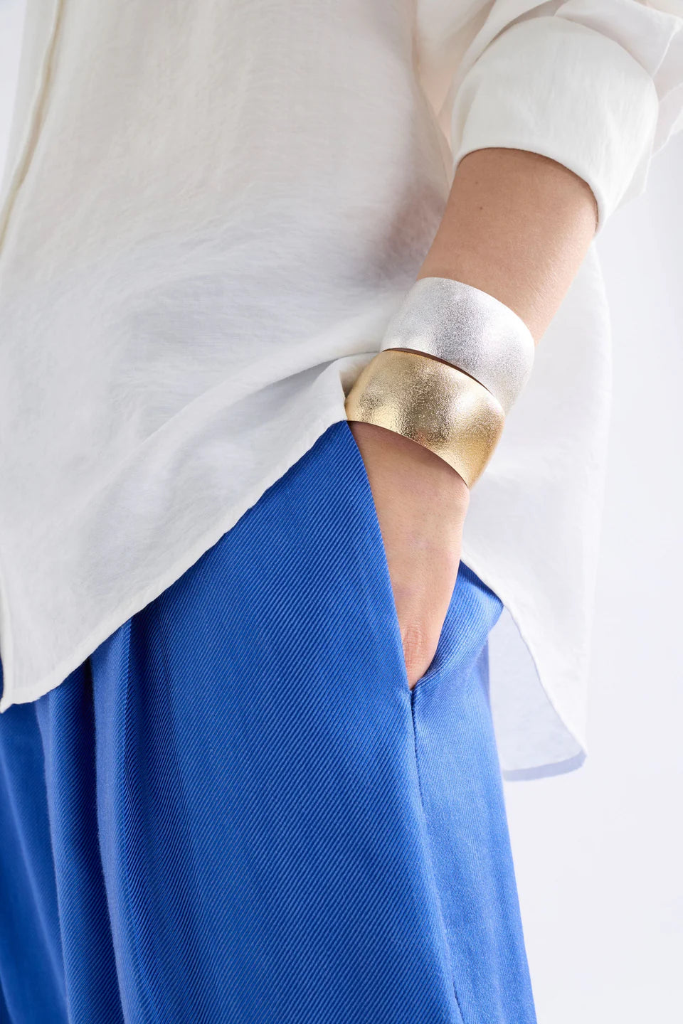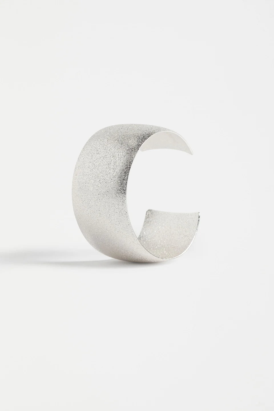 The Detta Bangle is a classic wide cuff style with a surface texture effect that reflects light in interesting ways, creating a subtle sparkle effect. This simple shaped designs unique textural element adds add a touch of shine to day and evening looks, while the open-ended design allows for size adjustability. Coordinate with matching Detta Hoop Earring in classic Silver and Gold colourways.