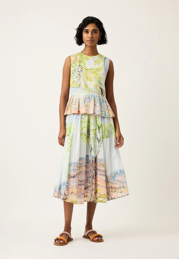 Created in collaboration with Iltja Ntjarra Art Centre, we honour the work of Kumantjai M Wheeler, whose painting Palm Valley captures the breathtaking beauty of Mparntwe / Alice Springs.