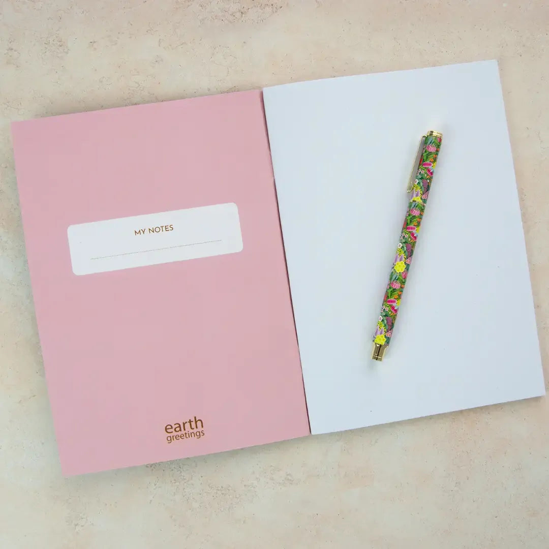 100% recycled, Earth friendly blank notebook featuring Australian native floral illustrations by Australian artist Jayne Branchflower.
