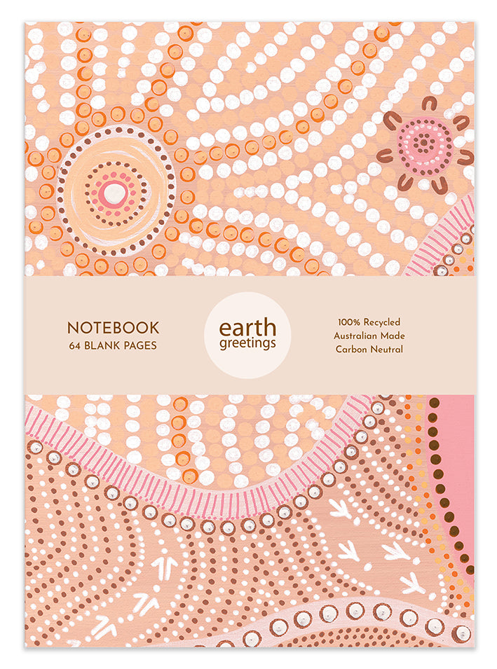 100% recycled, Earth friendly blank notebook featuring inspiring artwork by contemporary Aboriginal artist Domica Hill.