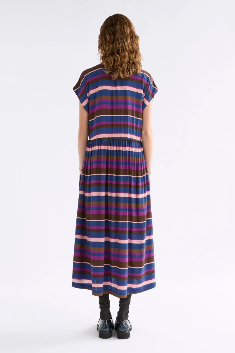 The Landau Dress is a classic ELK shirt dress shape, crafted from an LENZING ECOVERO™ viscose blend in the vibrant Riga Stripe. This regular fit, midi shirt dress features a flattering gathered skirt, shirt collar, capped sleeves, and a button-through placket to the waist, finished with practical side-seam pockets. This timeless style will be a staple for seasons to come, pair with flats for casual days or elevate with a heeled boot and statement jewellery for more dressy occasions.